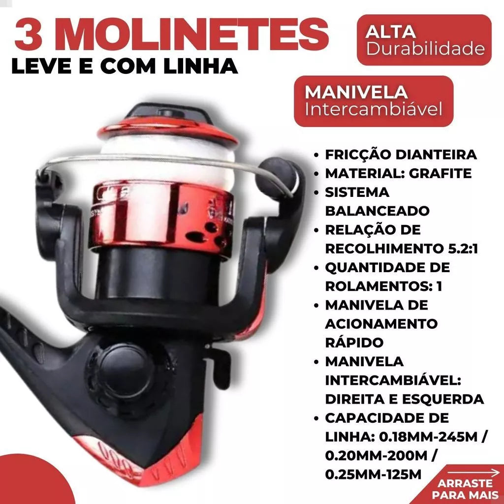 Kit De Pesca 4 Vara E 4 Molinete Com Linha Maleta Acessórios